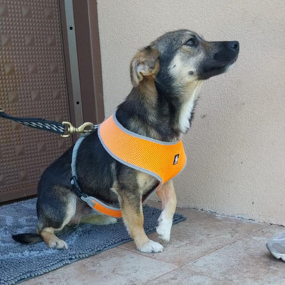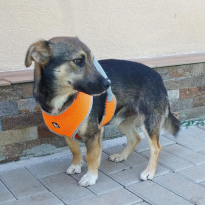 Einen Jagdtrieb konnten wir bisher nicht feststellen, und er scheint auch kein Kläffer zu sein. An der Leine läuft er sehr gut, geht gerne spazieren und genießt die Gassirunden. Auch im Auto ist er ein angenehmer Beifahrer und freut sich auf neue Abenteuer.
