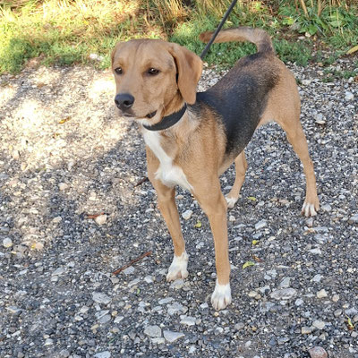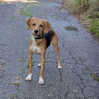 Anton wurde zusammen mit seiner Schwester Pünktchen im Juli 2025 im Wald aufgefunden. Die beiden Welpen folgten einer Frau, die sie ins Tierheim brachte. Anfangs waren sie eingeschüchtert und noch etwas ängstlich, doch durch regelmäßige Spaziergänge und sanfte Betreuung haben sie schnell Zutrauen gefasst. Anton ist der mutigere der beiden Geschwister: Er ist neugierig, verspielt und sucht aktiv den Kontakt zu Menschen. Seine Offenheit hilft auch seiner Schwester Pünktchen, sich zu entspannen und von ihm zu lernen. Die beiden tun sich gut. Es ist deutlich zu sehen, dass Pünktchen und Anton gerne auch in Zukunft zusammenleben wollen und sie sich in einem gemeinsamen Zuhause deutlich wohler fühlen würden.