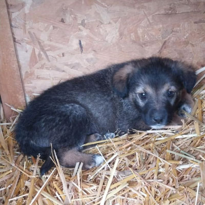 Als die Welpen geborgen wurden, war Ricky der vorsichtigste von allen. Er versteckte sich tief im Versteck, und es war schwer, ihn herauszuholen. Trotz seiner Angst zeigte er keinerlei Abwehrverhalten. In den ersten zwei Tagen verbrachte er viel Zeit im Haus und wirkte traurig und zurückhaltend. Erst als er aufgenommen und getragen wurde, begann er langsam Vertrauen zu fassen. Danach veränderte er sich deutlich und zeigt sich heute anhänglich, verschmust und freundlich.