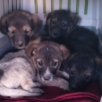 Die Welpen werden voraussichtlich klein bis mittelgroß bleiben. Ihre Mutter misst unter 40 cm und wiegt etwa 8–10 kg. Vor Ort lebt ein unkastrierter Rüde mit etwa 45 cm und rund 15 kg, der vermutlich der Vater ist. Daher ist zu erwarten, dass die Welpen ausgewachsen ungefähr 35–40 cm Schulterhöhe und etwa 10–12 kg erreichen.