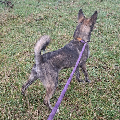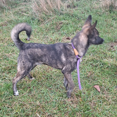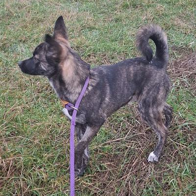Der hübsche Rüde kennt das Laufen an der Leine, bewegt sich sicher auf Treppen und hat bereits im Haus gelebt. Hundespielzeug mag er sehr gerne.
