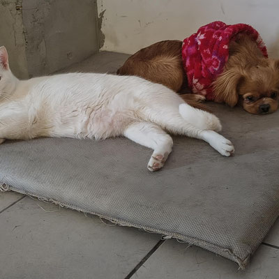 Pepino wurde im Stadtzentrum gefunden. Er war alleine unterwegs und niemand suchte nach ihm. Er war heilfroh, dass er der Straße entkommen konnte und wieder im Haus leben durfte. Seitdem lebt Pepino in privater Pflege zusammen mit Hunden und Katzen im Haushalt. Es ist sehr wahrscheinlich, dass er zuvor bereits in einem Haus gelebt hat, da er sich im häuslichen Umfeld sicher verhält.