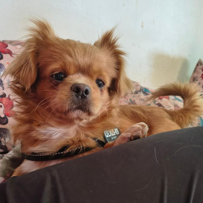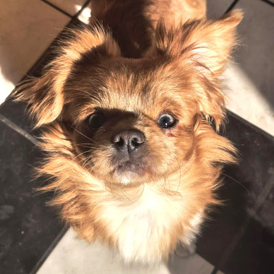 Pepino, der kinderliebe Pekinese mit den einzigartigen dunkelblauen Augen.
