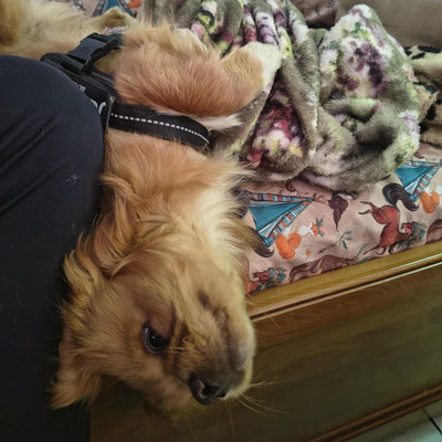 Das Alleinebleiben bereitet ihm kein Problem, jedoch ist er mit anderen Hunden und Katzen zusammen. Vom Gefühl her denken wir, dass er auch ohne andere Hunde alleine bleiben kann. Er kann auch Treppen laufen.