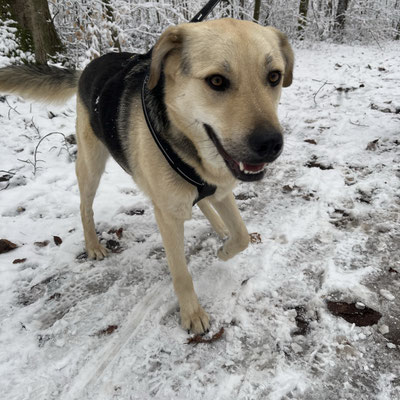 Spaziergänge gehören für Oskar zu seinen Lieblingsbeschäftigungen. Er läuft insgesamt ordentlich an der Leine, ist aber gerne etwas voraus unterwegs. Auf leichte, ruhige Korrekturen reagiert er sensibel und verlangsamt sofort sein Tempo. Wie viele Hunde lässt er sich unterwegs von spannenden Gerüchen schon mal ablenken.